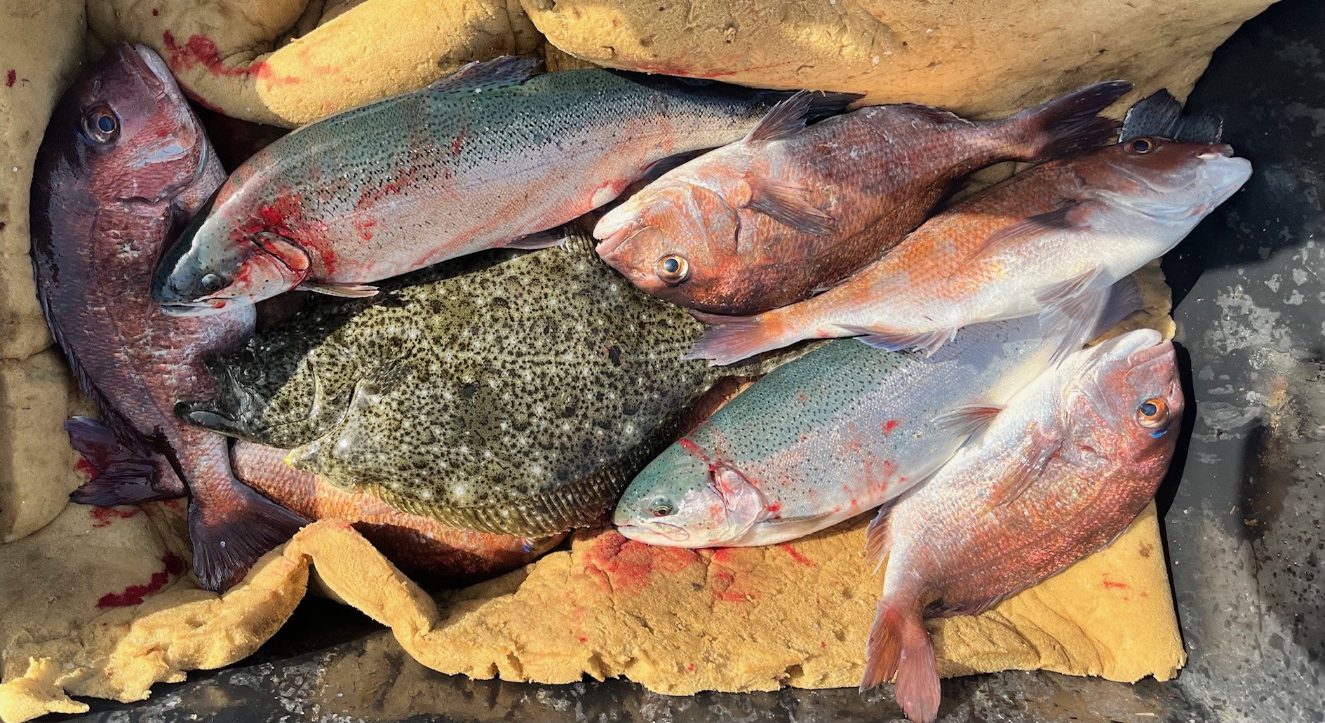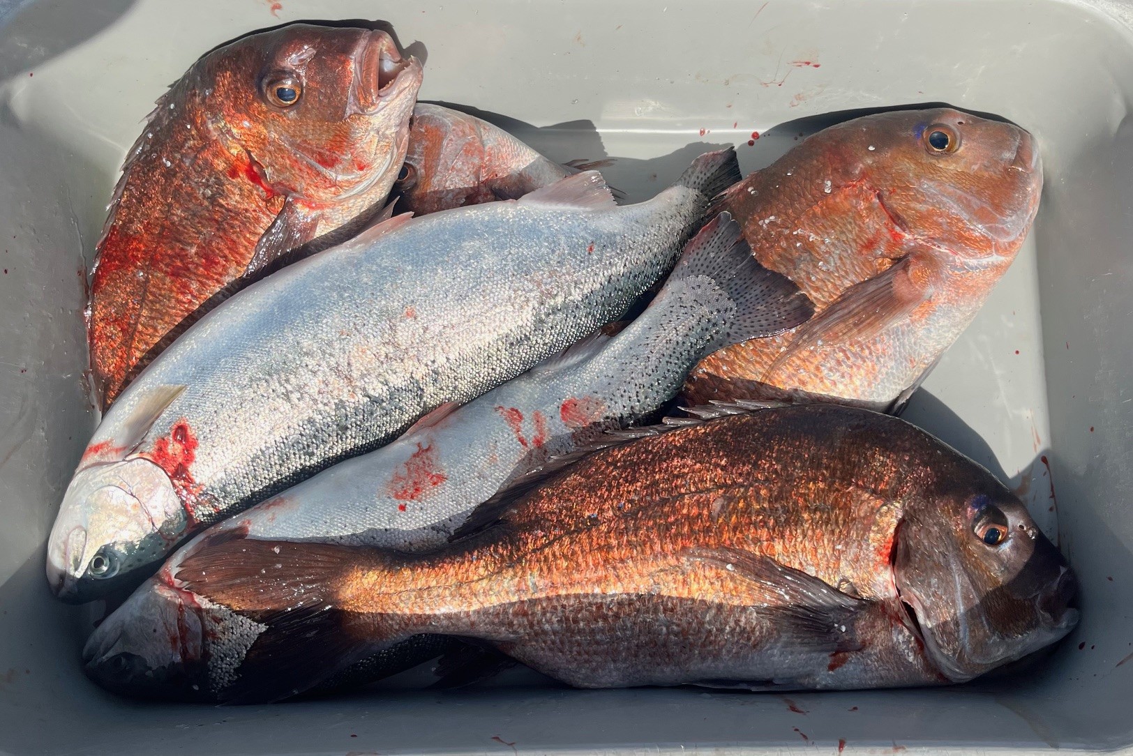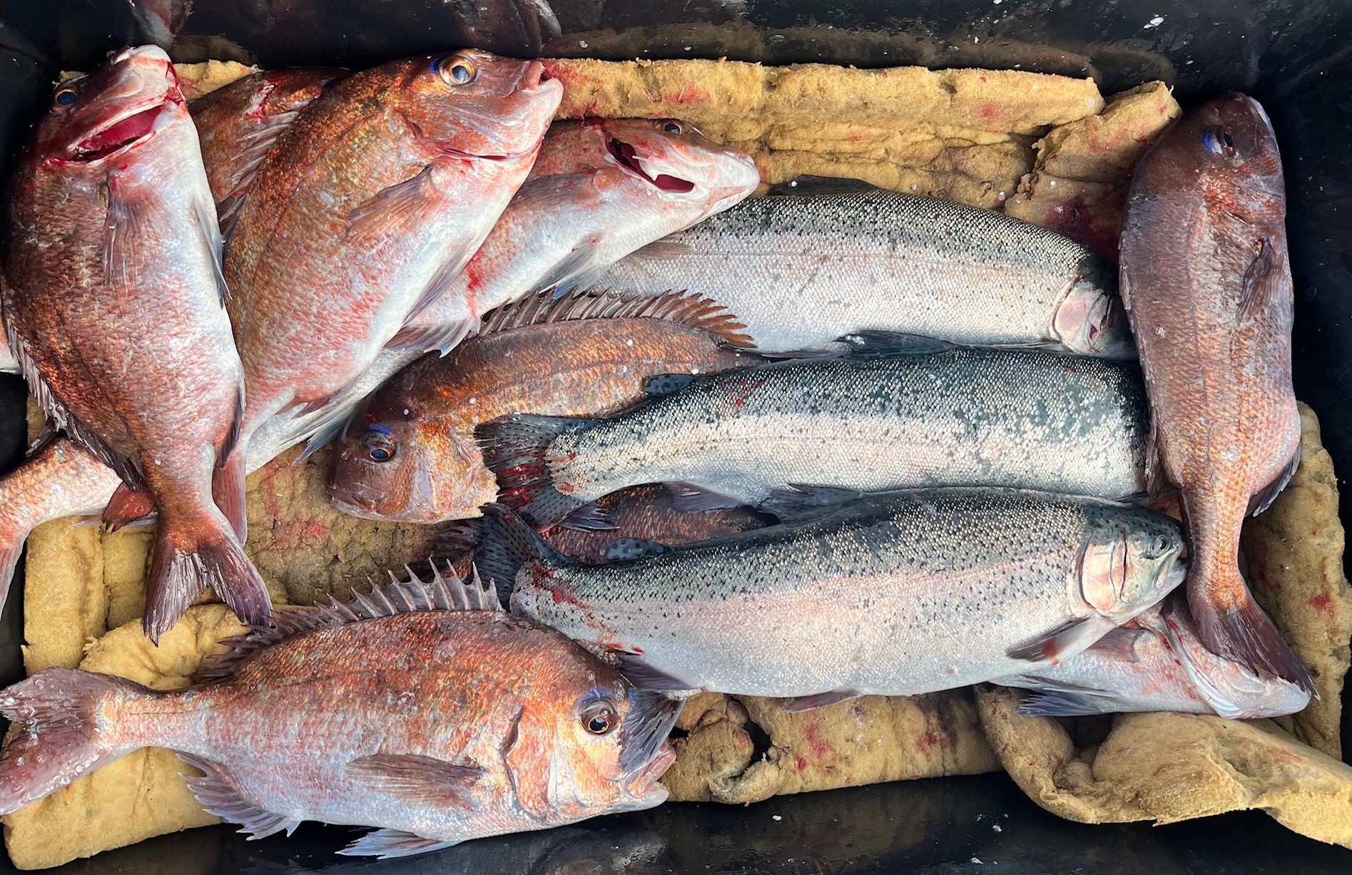 ☆只今の放流魚→タイ・ジャンボブリ・ハマチ・ブリ・ヒラメ・レモンサーモン
