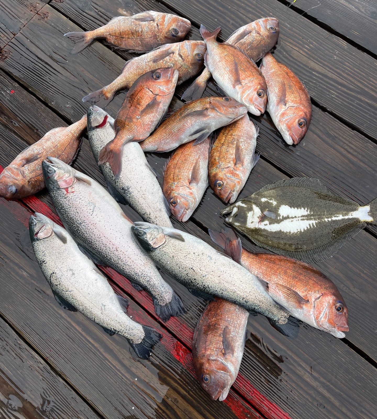 ☆今日は練り餌に反応が良かったです。タナは底から50㎝。レモンサーモンのアタリがないときは、タナを探ってみると良いかも(^^)/