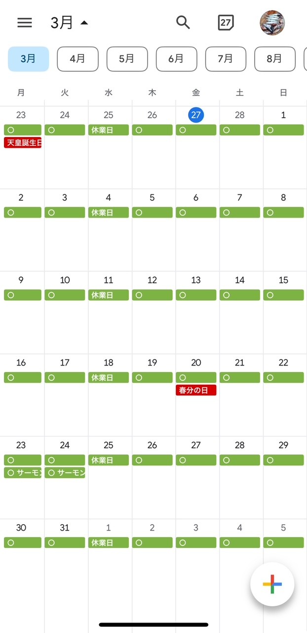☆予約状況が見られない方はこちらのカレンダーでご確認お願いします。リアルタイムではないので確実な予約状況はお電話でご確認お願いします。