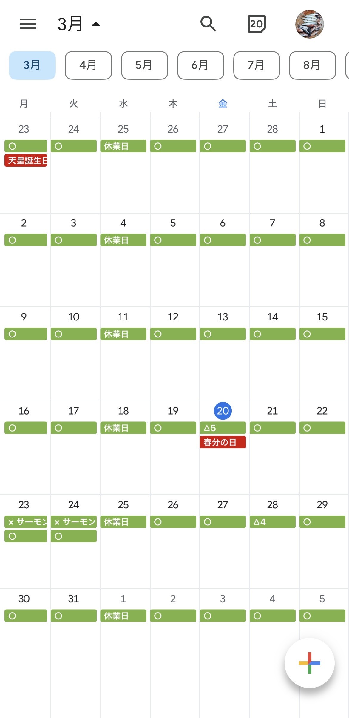 ☆予約状況が見られない方はこちらのカレンダーでご確認お願いします。リアルタイムではないので確実な予約状況はお電話でご確認お願いします。