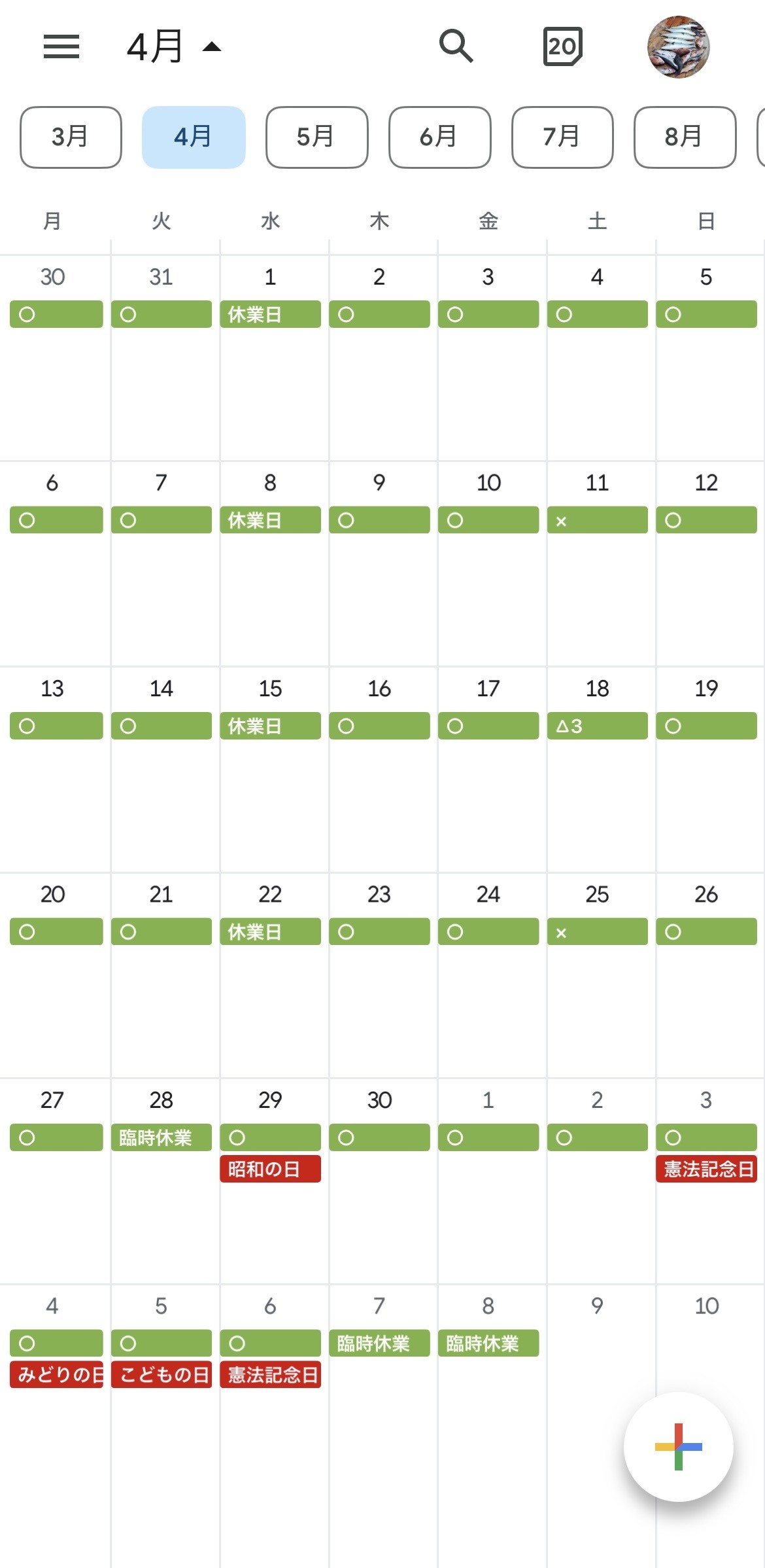 4月29日(水)~5月6日(水) 営業日