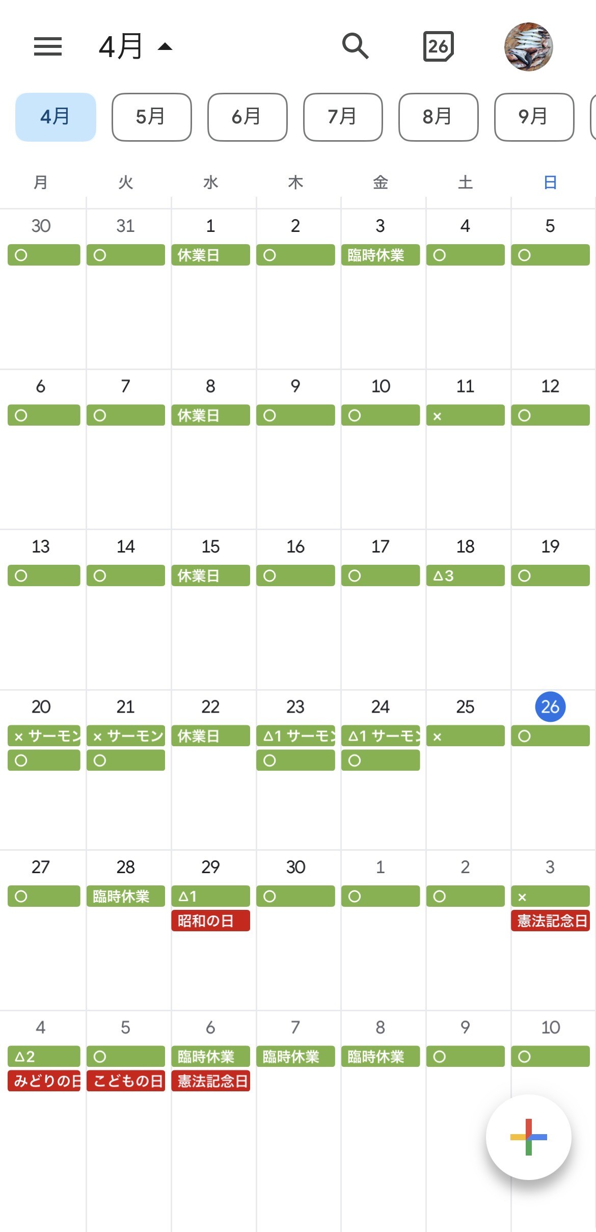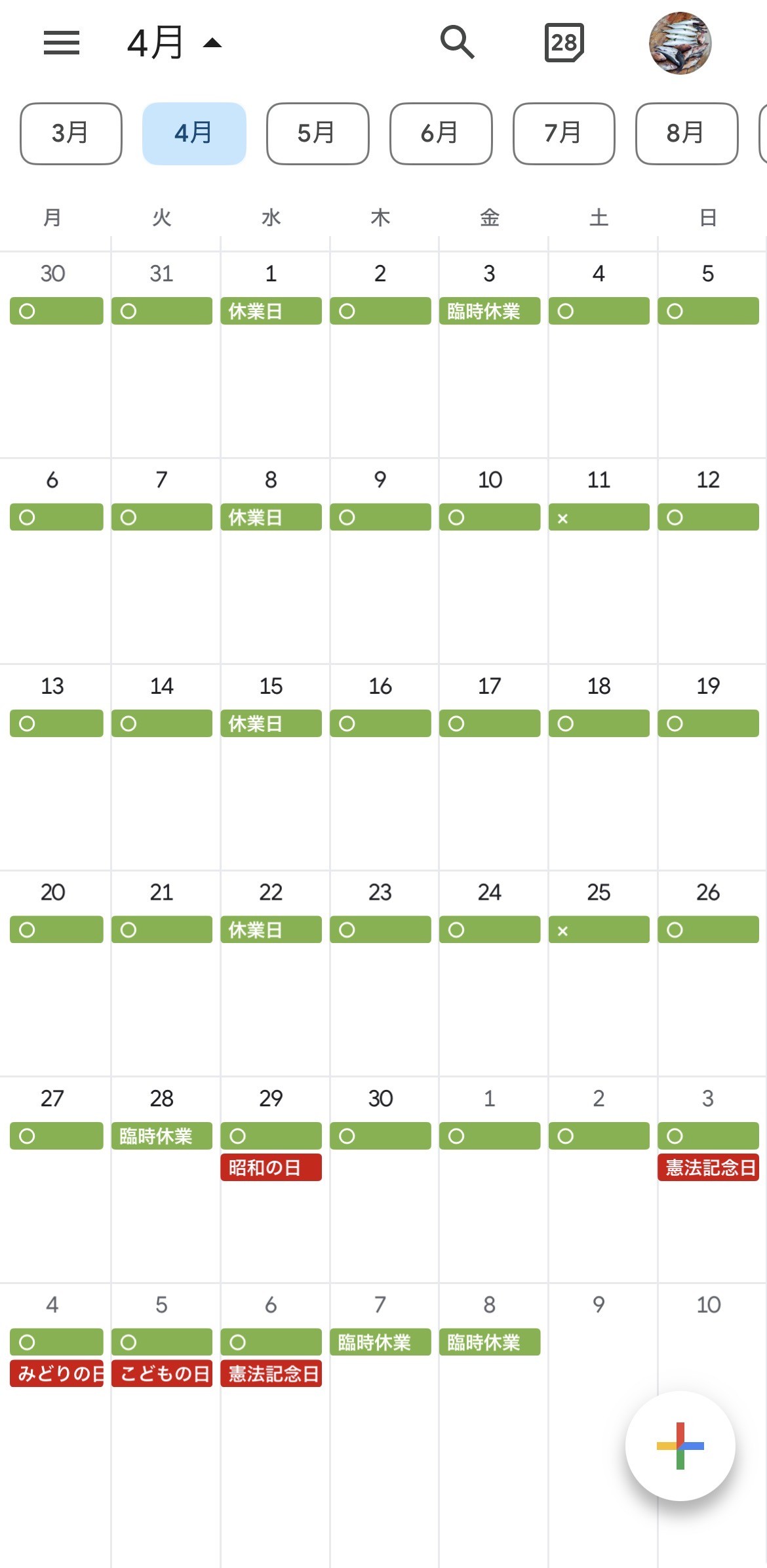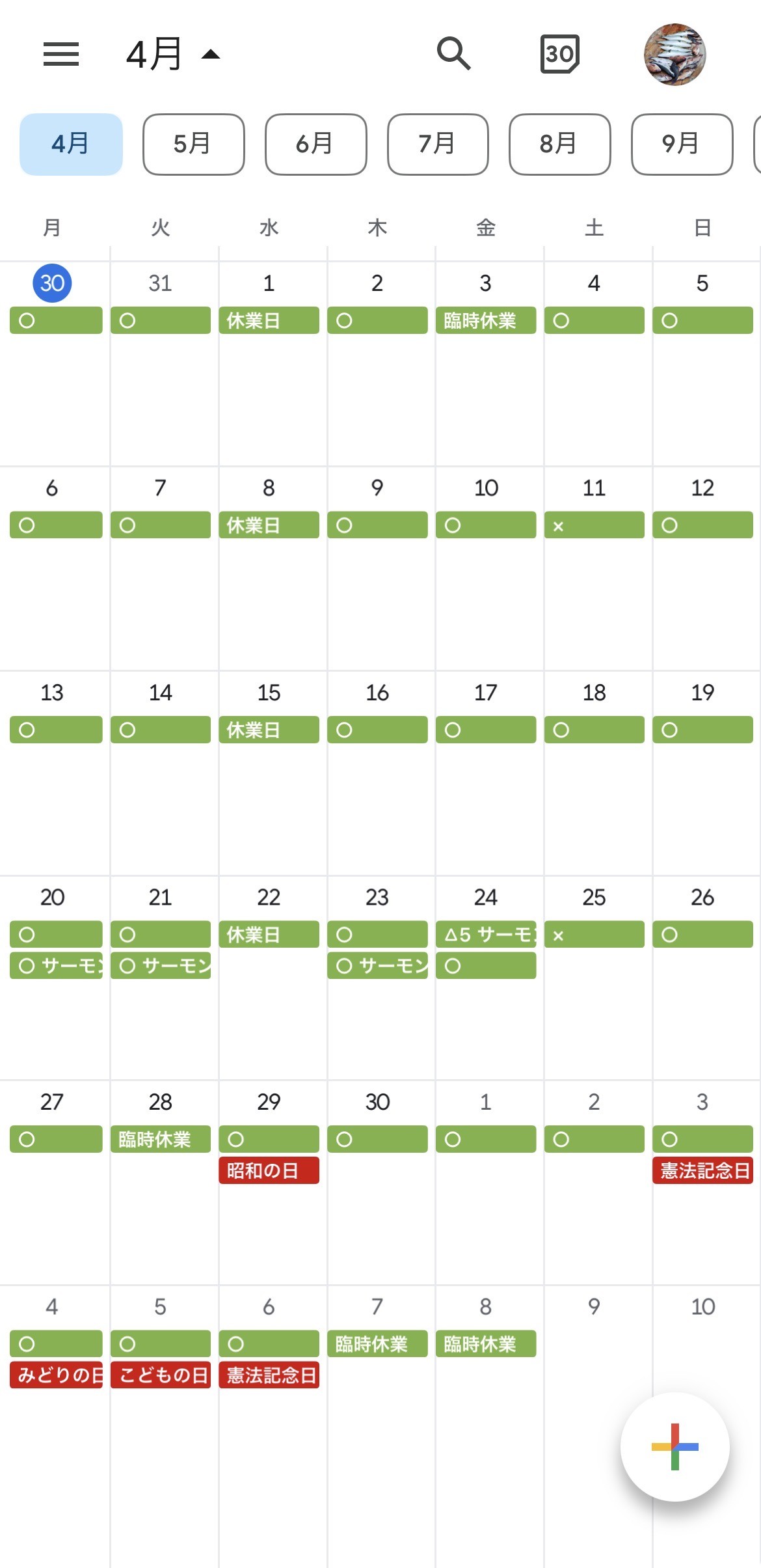 4月29日(水)~5月5日(火) 営業日