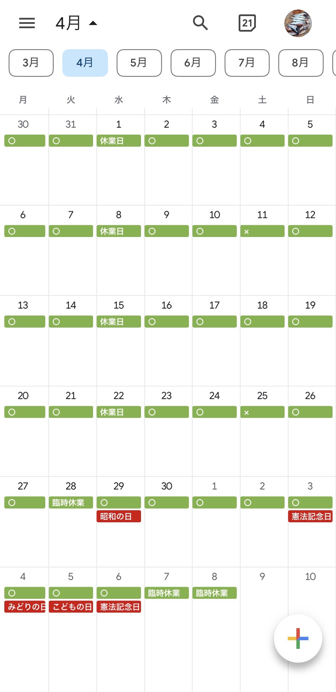 4月29日(水)~5月6日(水) 営業日