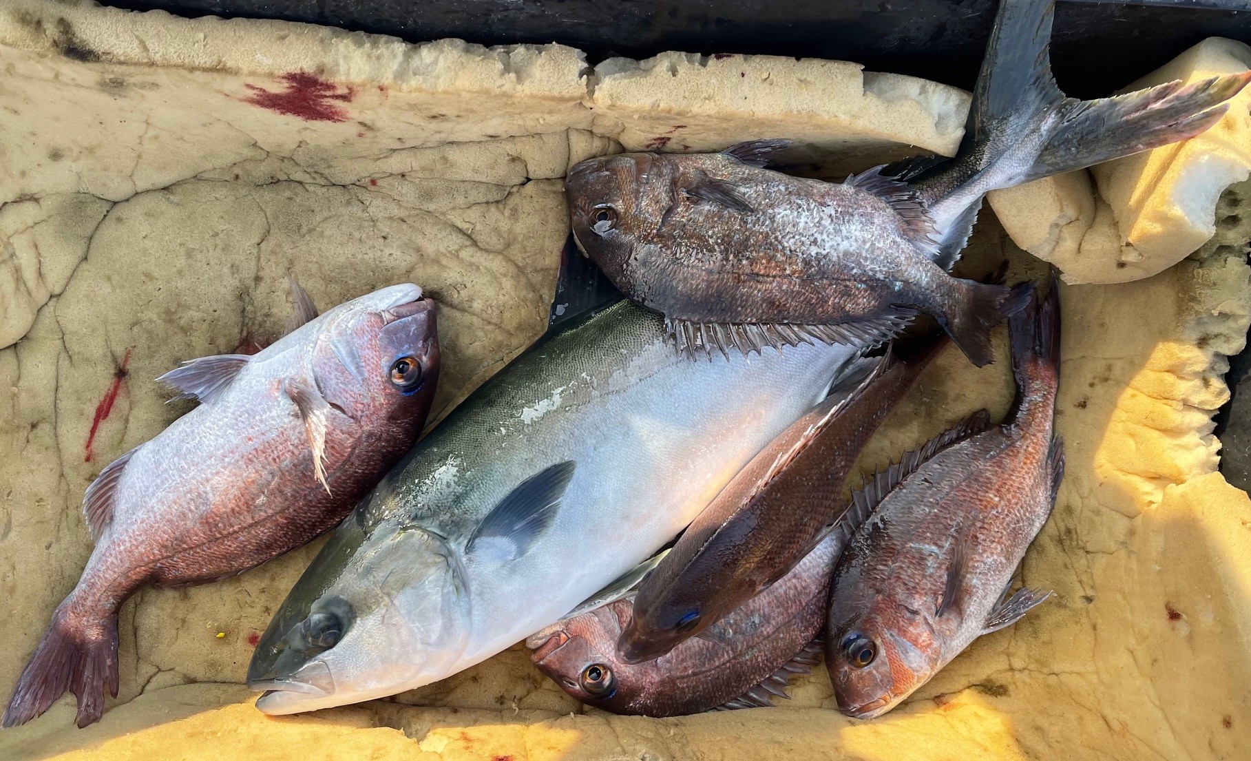☆今日は青物の活性良かったです。青物はキビナゴ・イワシ・生き餌。タイは練り餌に食いつき良かったです。