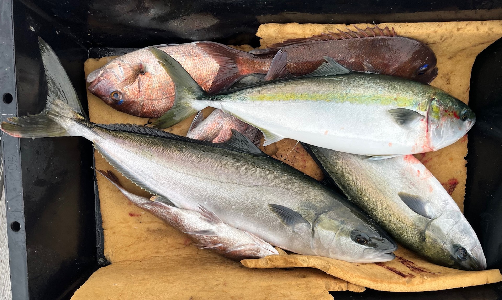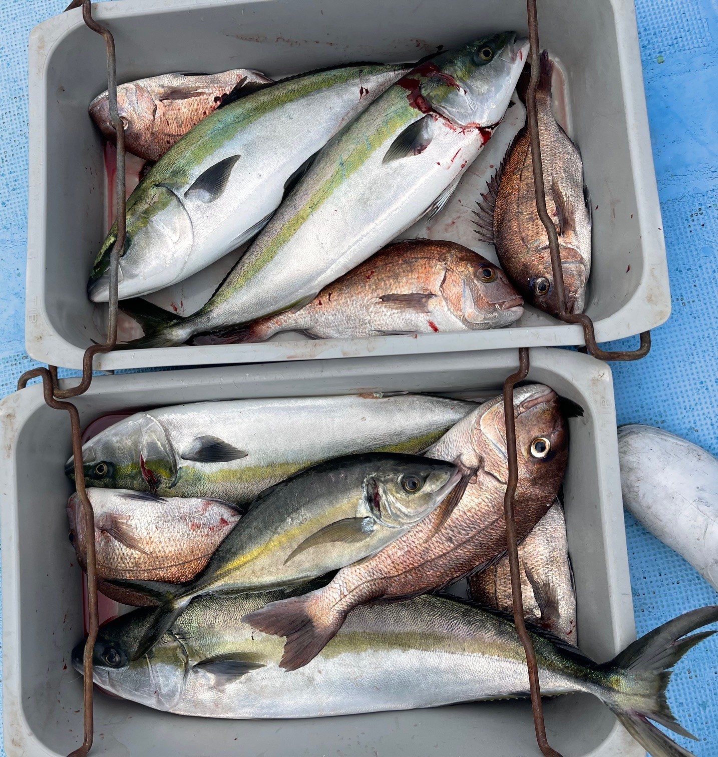 ☆今日は午前中から青物の活性の良い筏もありました。エサは練り餌・キビナゴ・ササミ・生き餌。タナは底から50㎝。